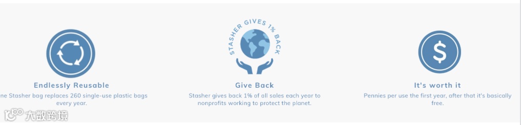 在品牌营销活动上,因为主打的环保理念,所以品牌每年1%的销售额会捐赠给致力于保护地球的非盈利环保组织;并且强调每年每个Stasher的环保保鲜袋能减少260个塑料袋的使用,成功的树立环保的品牌形象。