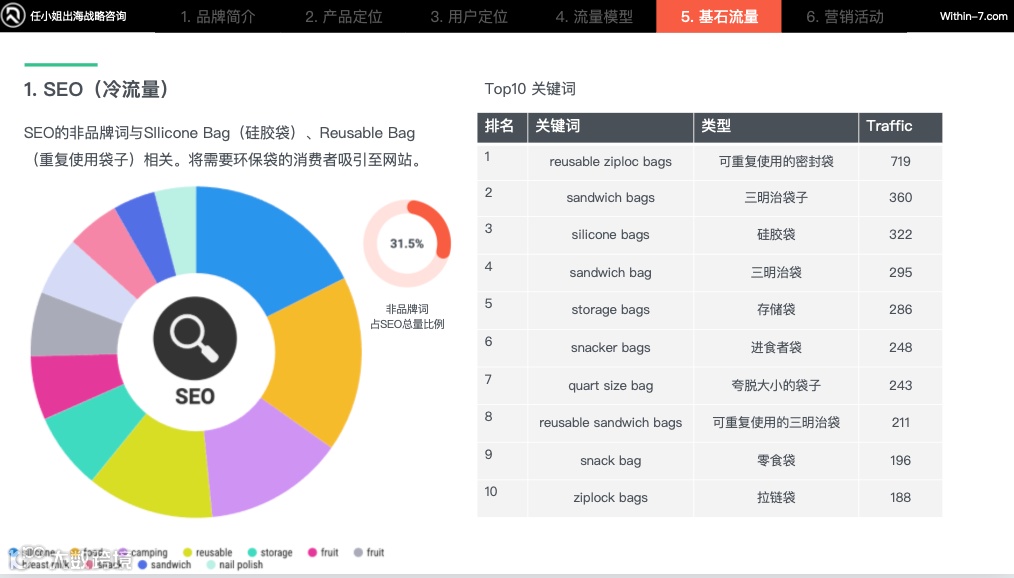 重点提高“硅胶袋”和“可重复使用食品袋”的非品牌词占比,将需要环保袋的消费者精准吸引至网站,这类人大多为注重环境保护和可持续生活方式的人。