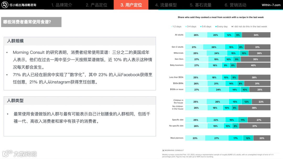 而这类会在网络上搜索食谱的消费者会更愿意尝试和更换不同菜式,因而更加买单他们的品牌“多功能”的特色。做到多渠道营销、精准定位。