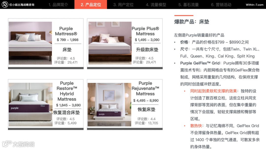 Purple产品相比于其他同品类产品,他的床垫技术远超于其竞品品牌。