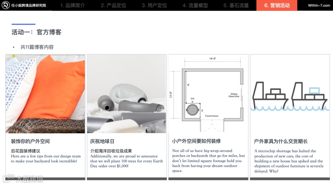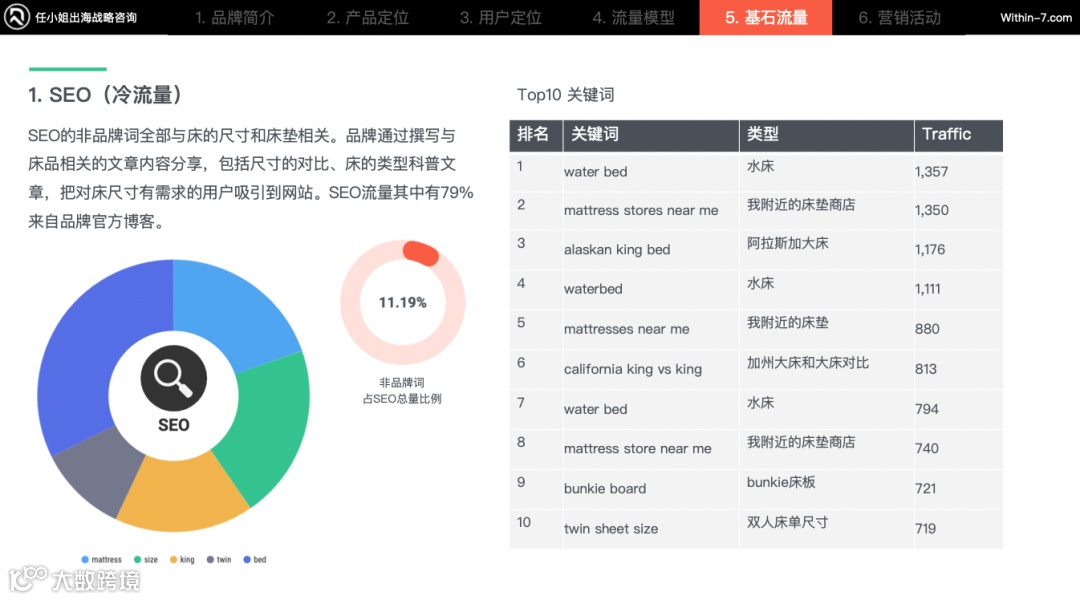 并且在SEO中79%主要流量来源于官方博客。品牌购买细分产品词(如家具尺寸、相关产品)以及用户可能会搜索的词获取被动流量。这类被动流量大部分被引流到官方博客。