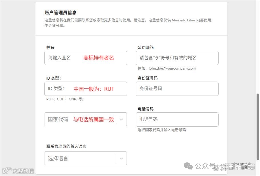 联系邮箱:填写商标持有者官方邮箱(建议与美客多卖家店铺邮箱区分,避免信息混淆)。