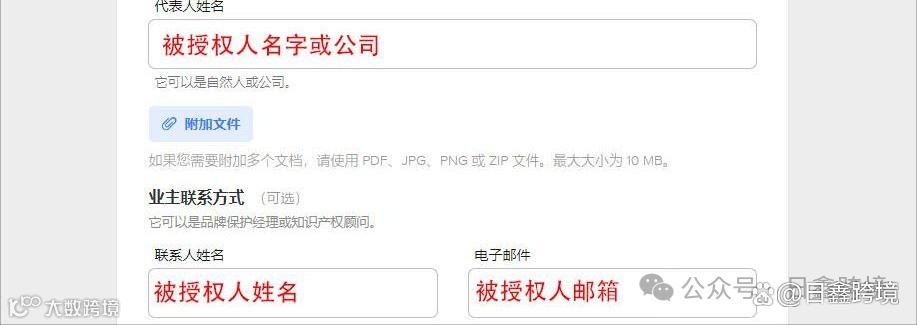 5. 补充资料:店铺主体与商标持有者不一致时,需提供经公证的授权书(若以权利代表身份注册,授权书法人签名也需翻译)。