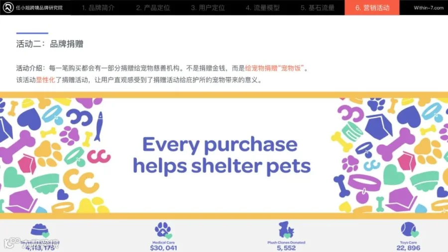 这样直观显性化的捐赠活动,比起捐钱更能增加用户好感度,也为品牌建立了很深的用户心智:非常爱自己宠物的品牌。