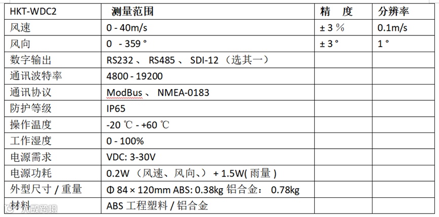 HKT-WDC2系列超声波风速仪内部采用低功耗芯片,功耗仅为0.7W,特别适合对电源功耗要求比较高的太阳能或电池供电环境下使用。由于采用了新技术和新工艺,使结构更加紧凑小巧。外壳为工程塑料,有黑色和白色两种颜色供用户选择使用。