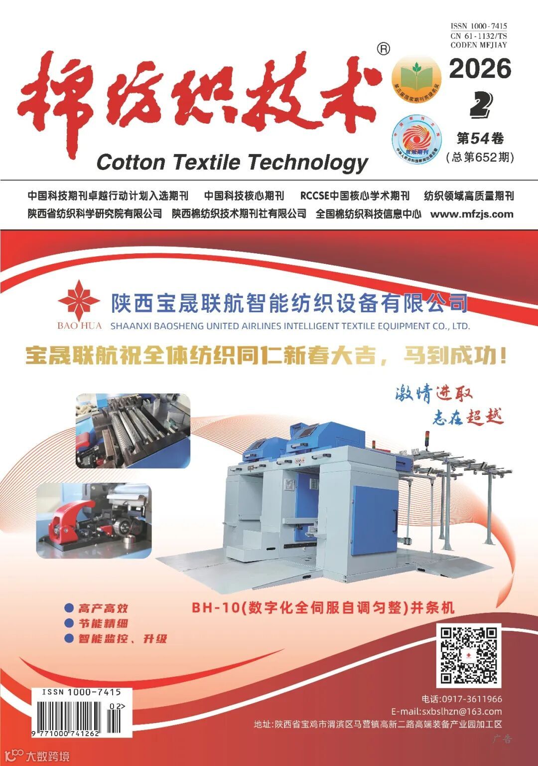 《棉纺织技术》围绕国家纺织产业政策和行业技术发展方向,坚持“走出去办刊”和“专家办刊”思路,不断加强期刊编辑工作创新,推行专题主编邀约组稿机制,经前期精心策划和组织实施,“高性能复合材料”专刊成功编辑出版,刊载于2026年第2期。