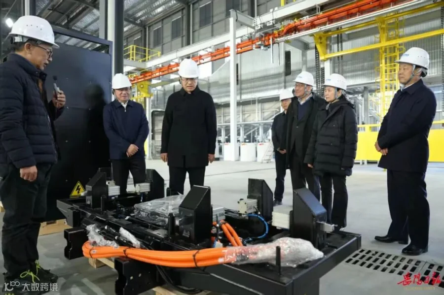1月7日下午,谢卫江书记、李挚市长等领导在玖行新能源重卡换电系统智能制造项目调研