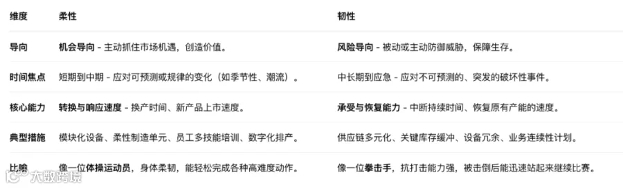 韧性:指的是制造系统抵御、吸收冲击并快速恢复的能力。它关注的是“抗打击、保生存”。