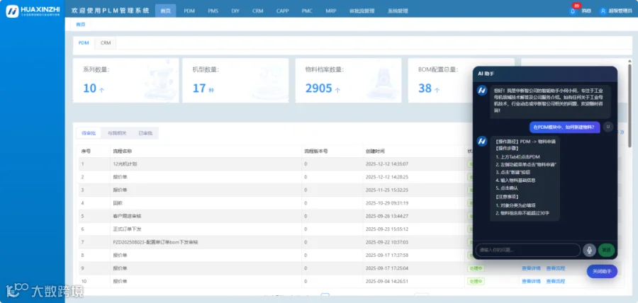 华新智凭借深厚的工业智造实践,已助力众多企业成功部署并验证了贯穿产品全生命周期的PLM系统。今天,我们正式将 小伺AI助手 深度植入这套经过实战检验的数字化核心,旨在解锁数据深层价值,驱动企业决策与执行迈向“实时响应、自适应优化、智能化协同”的新阶段。