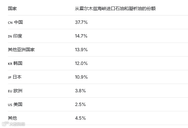 中国是霍尔木兹海峡石油的最大进口国,占该海峡石油出口总量的37.7%。 -