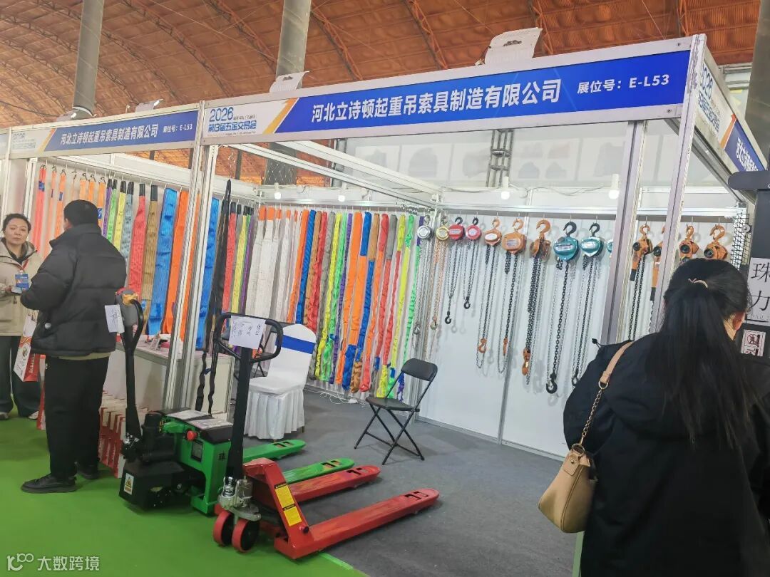 在刚刚结束的第13届五金交易会上,我们惊喜偶遇会员企业——河北立诗顿起重吊索具制造有限公司(展位号:E-L53)!展位现场人气爆棚,彩色吊带、链条葫芦、手动搬运车等产品琳琅满目。
