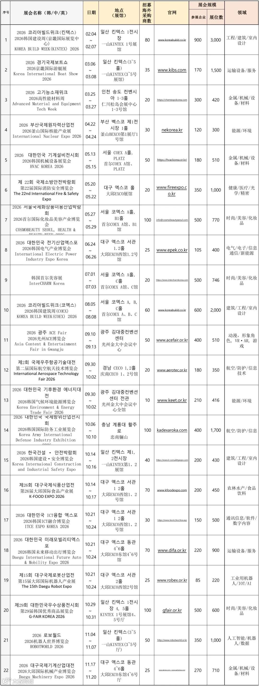 若您对以上赴韩展会感兴趣,有意向采购韩国产品
