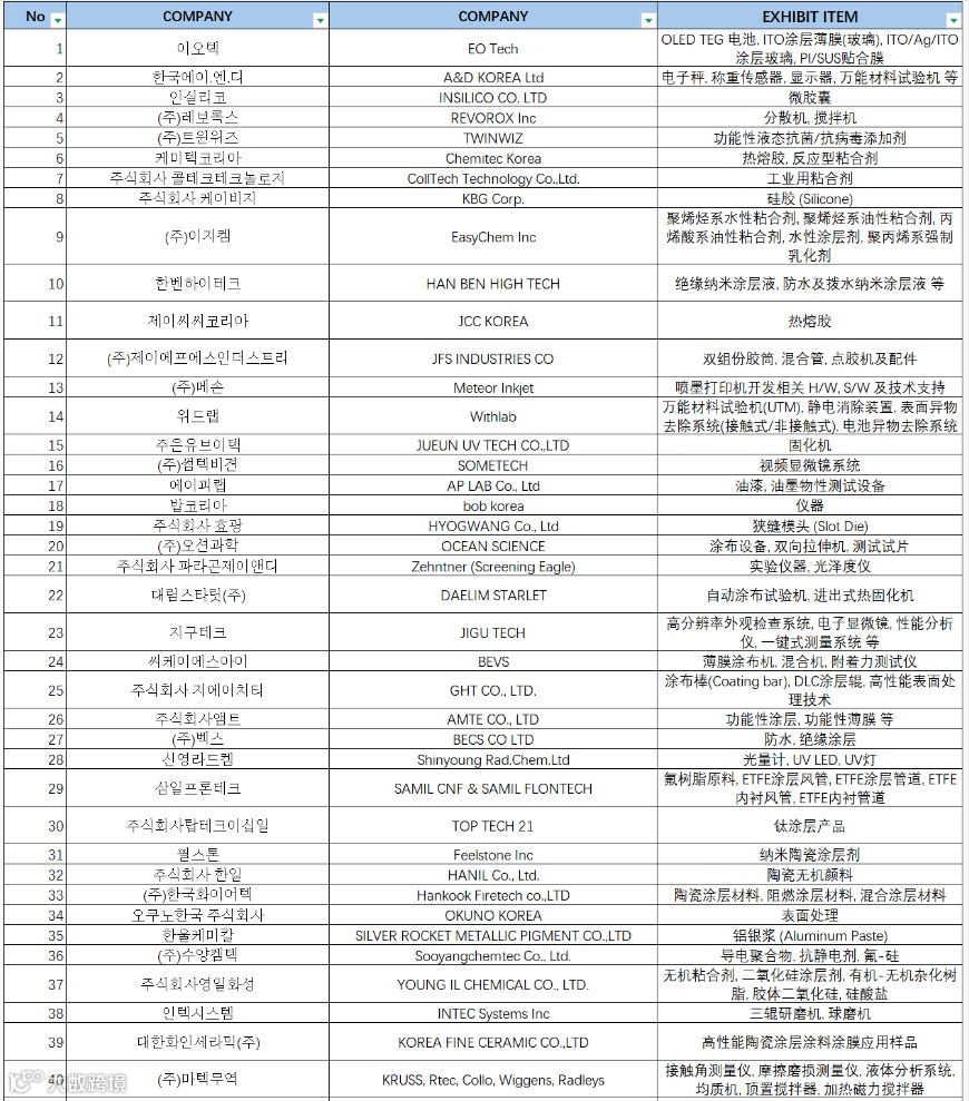组成展会: 第17届韩国涂层/胶粘剂/薄膜产业展、第14届韩国表面处理/涂装产业展、第3届韩国尖端材料展、第1届韩国材料测试设备展