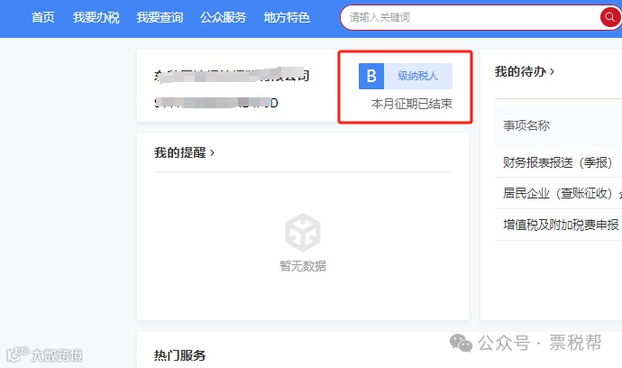 1. 登录新版电子税务局,首页可查看信用等级;
