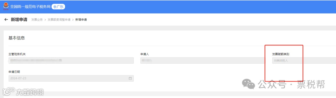 2. 点击“发票业务”,选择“发票额度调整申请”,在页面中可查看发票赋额类别。