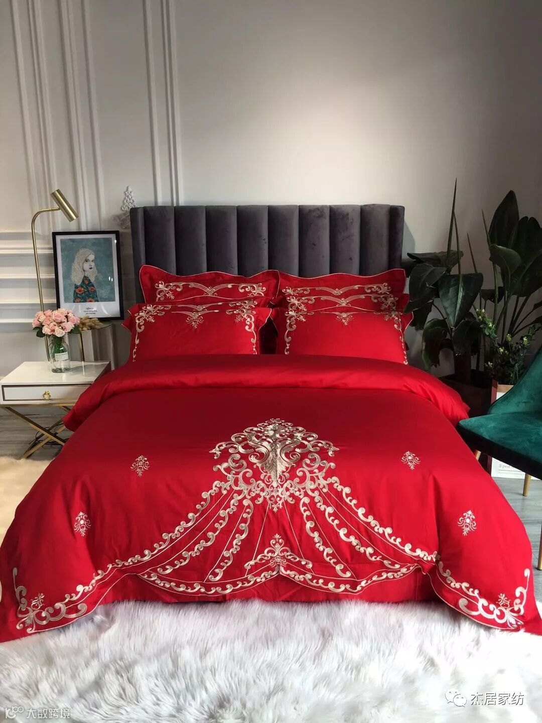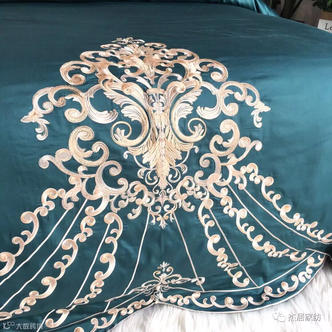 金色绣线精密细致,结构严谨隆重