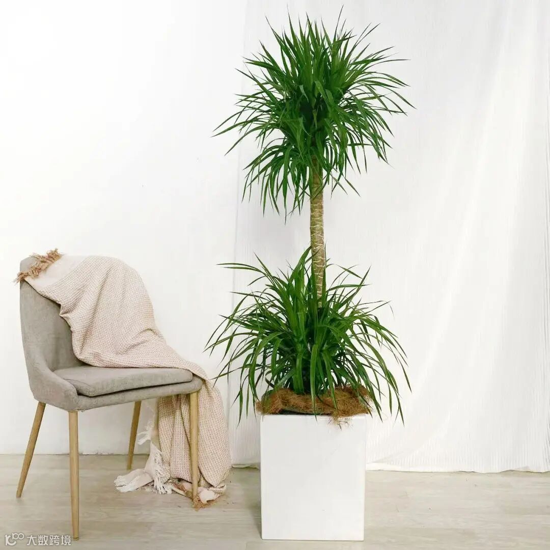 龙血树的株型非常挺拔,叶片狭长自然下垂,很有热带风情。小的龙血树