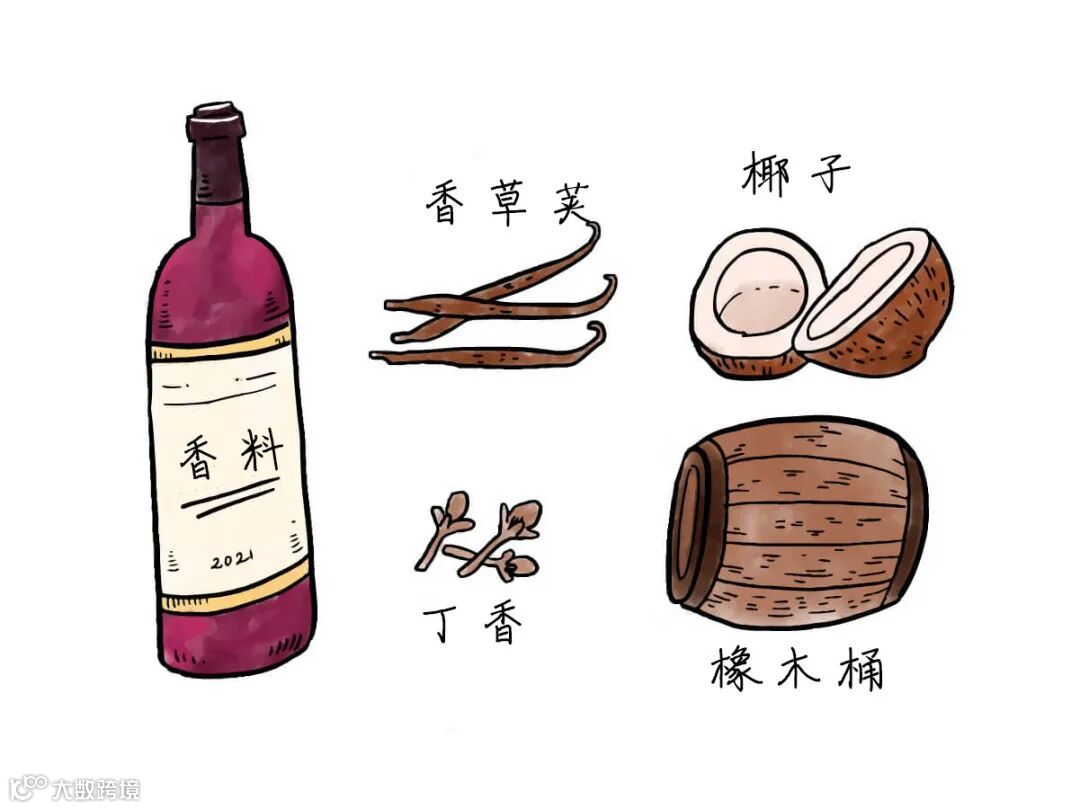 橡木桶中,香草的味道来自香兰素,在法国和美国橡木桶中都能找到,我们还能从丁香酚和愈创木酚中分别获得烤面包和丁香的香气。