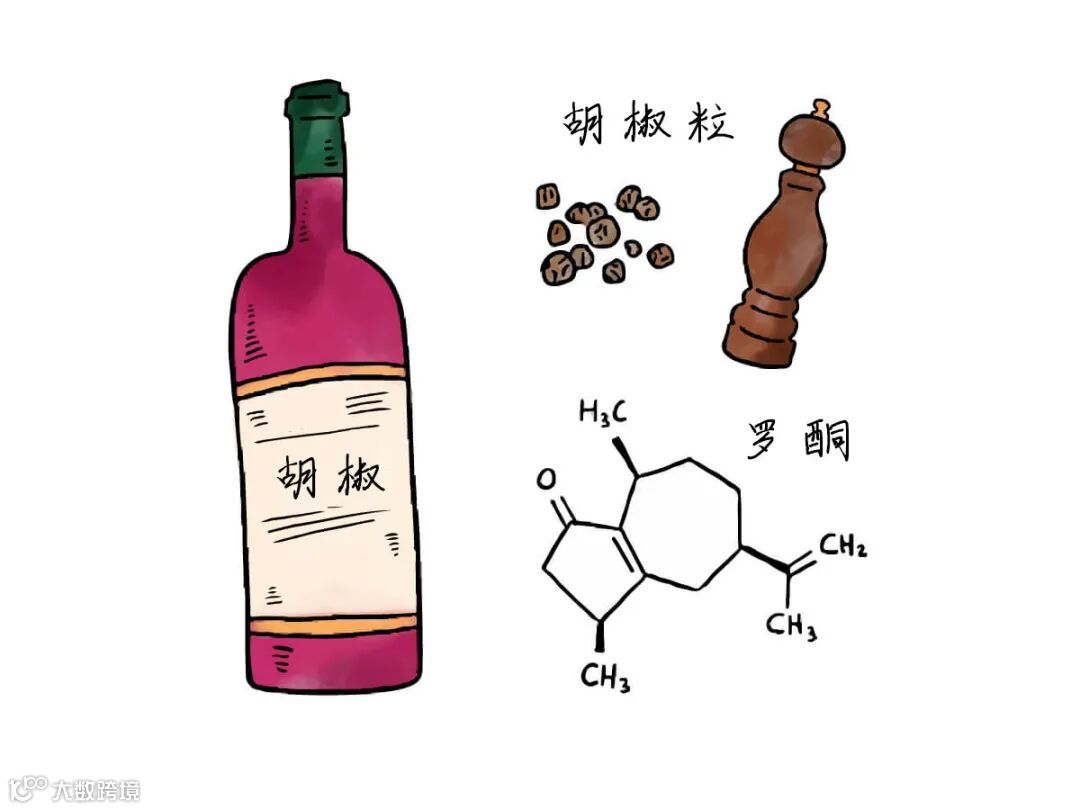 西拉葡萄酒具有很强的胡椒味,这是因为西拉葡萄的果皮中含有一种与黑胡椒相同的化合物——这种天然存在的化合物被称为"罗酮"。