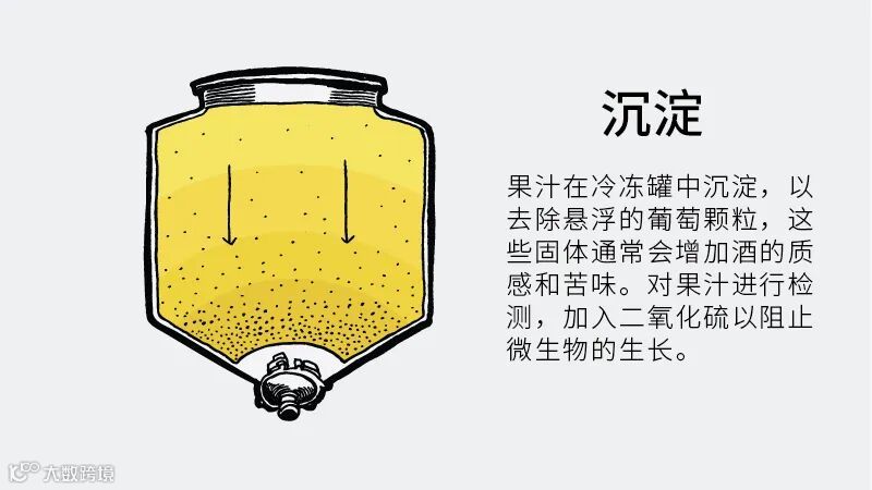 鲜榨的果汁是浑浊和甜美的!把果汁放在水箱中放置一小段时间,以沉淀和冷却下来。沉淀过程有助于去除通常会给成酒增加苦味的悬浮固体。