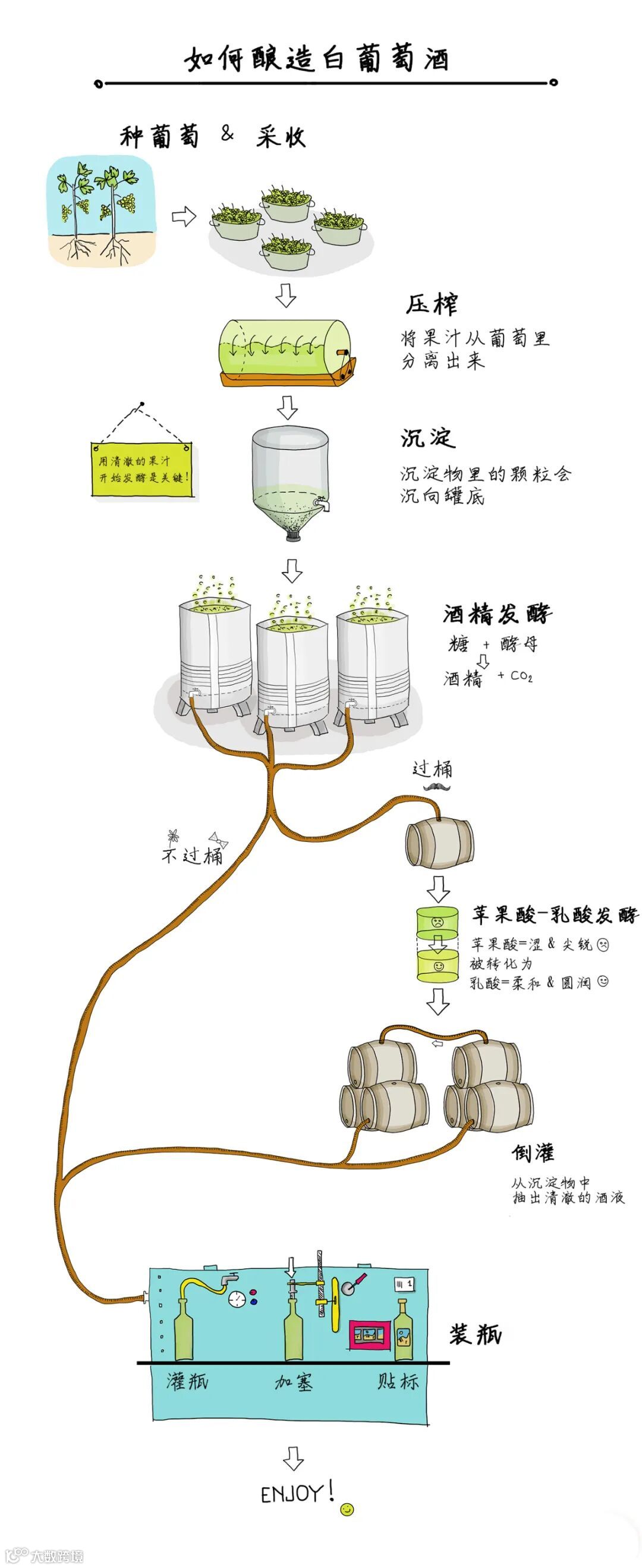 前几期小课堂我们一起了解了红葡萄酒是如何一步一步酿造出来的,那么白葡萄酒的酿造又与红葡萄酒有哪些不同之处呢?蕾切尔为你图解白葡萄酒的酿造步骤,从葡萄藤到杯中酒。