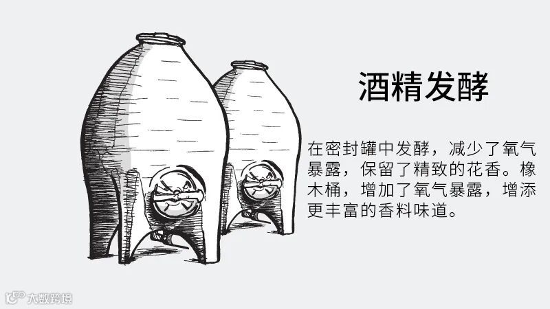 此外,白葡萄酒很少被放在一个开放透气的发酵罐中。这样做的目的是为了减少氧气暴露,因为氧气会“烧掉”白葡萄酒中所有这些精致的香气。