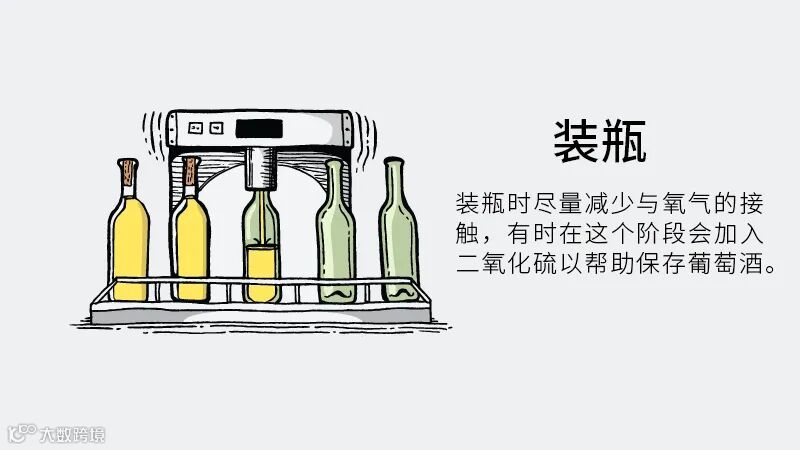 现在,是时候给我们的葡萄酒装瓶了。非常重要的是,在做这一步骤时,要尽可能少地暴露在氧气中。通常会加入少量的二氧化硫来帮助保存葡萄酒。