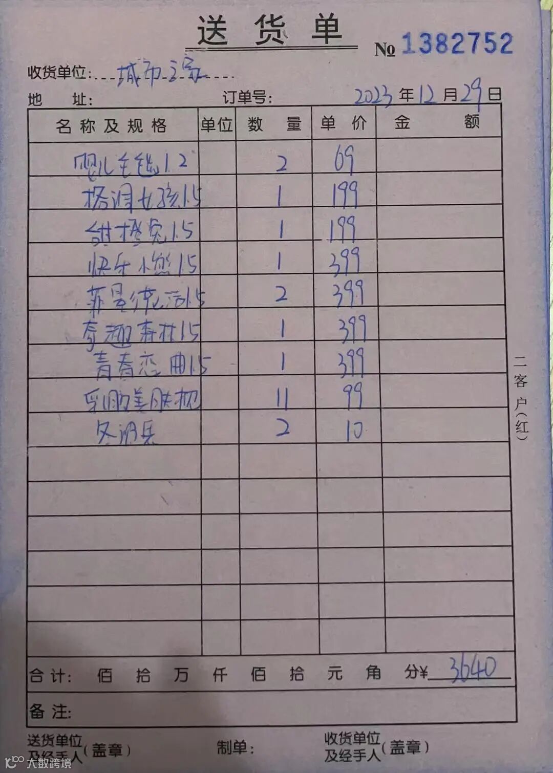标的规格: 被子,毛毯等