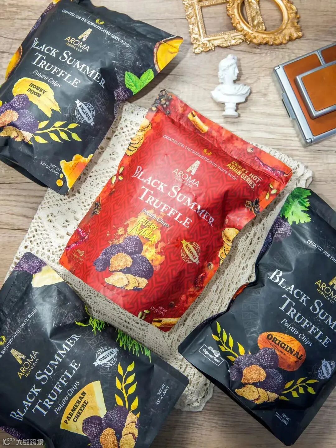 新加坡知名网红品牌Aroma Truffle黑松露薯片被称之为“薯片界的爱马仕”,每一口都是金钱的味道哦~黑松露采自意大利Spoleto农场,空运到新加坡烹制纯手工制作,一打包装就能闻到浓郁的黑松露香气,土豆切片薄韧厚实,口口生香每一口都是星级般的享受。