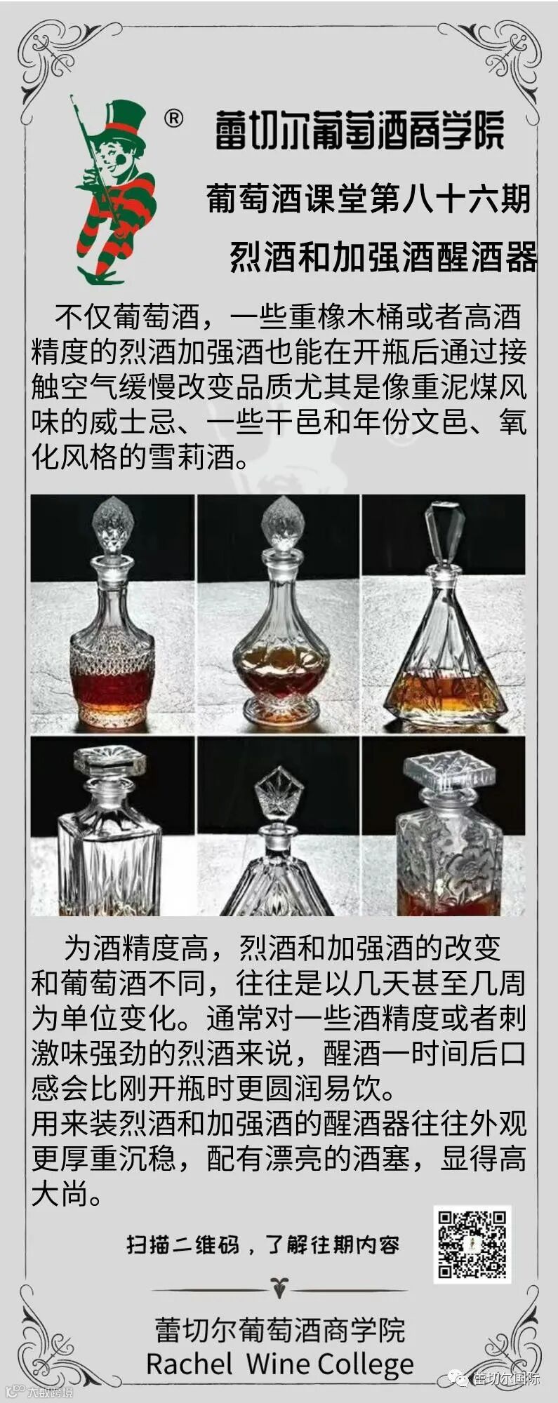 蕾切尔国际不仅葡萄酒,一些重橡木桶或者高酒精度的烈酒加强酒也能在开瓶后通过接触空气缓慢改变品质尤其是像重泥煤风味的威士忌、一些干邑和年份文邑、氧化风格的雪莉酒。