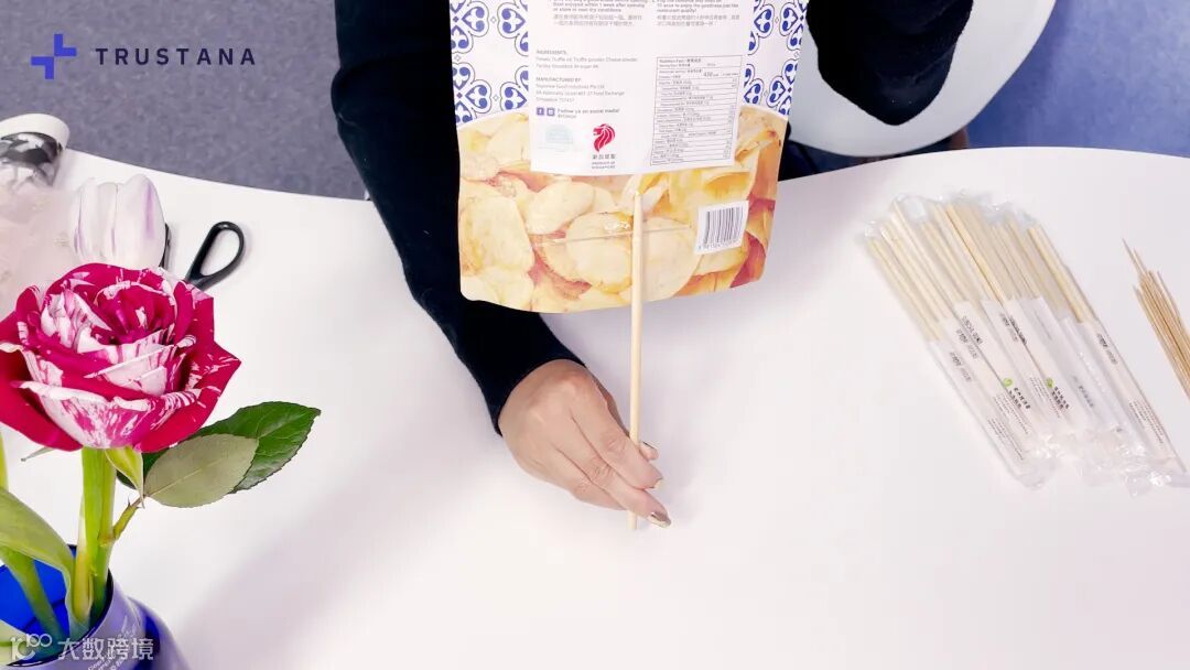 2、用一次性筷子或其他小木棍在每个零食后面固定好“十字架”