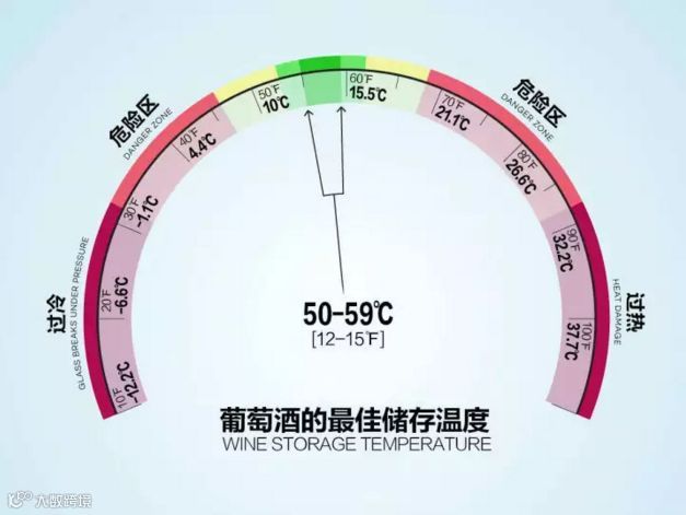 葡萄酒的理想存储温度是12~15℃,如果满足不了这个条件,扩大到5~20℃也可以,而且要注意的是,无论是在储存还是运输过程中,尽量避免温差过大,以不超过10℃为宜。