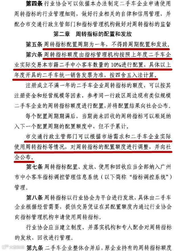广州市中小客车指标调控管理信息系统于2016年1月4日发布《广州市二手中小客车交易周转指标管理试行办法》此办法在广州市中小客车总量调控政策下,本市行政区域内依法登记从事二手车经销、拍卖的企业在二手车中小客车交易中,收购本市籍车辆办理转移登记中使用的指标。从而促进二手车交易行业健康发展,推动中小客车总量调控政策下本市二手车中小客车的流转。