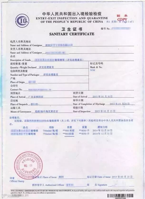 此外,等商检结果出来,还要签发卫生证书。