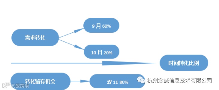 预热与造势是为了达成产品在大促日的大爆发,实际上九月份到十月份到双11当日是有一定转化周期时间段的,在这个时间段里产品是有会需求转化或转化留存机会。有的买家并不会等到这个时间节点去购买产品,而有的买家会选着等待大促的优惠活动再去购买产品,我们姑且可以把这种行为叫作“转化留存机会”。需求转化、转化留存机会一般来说: