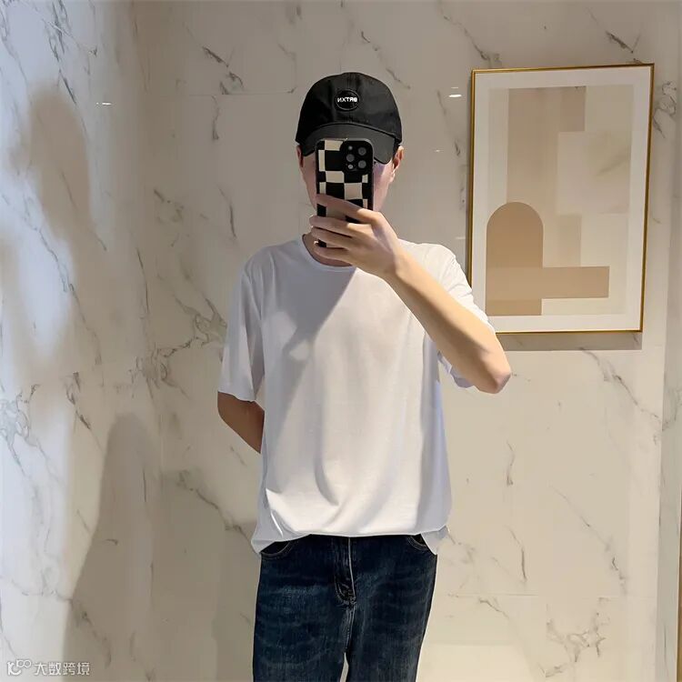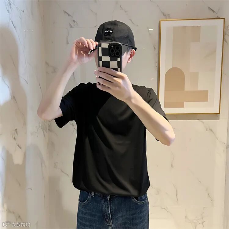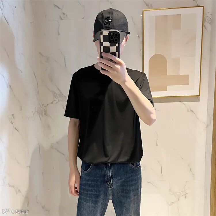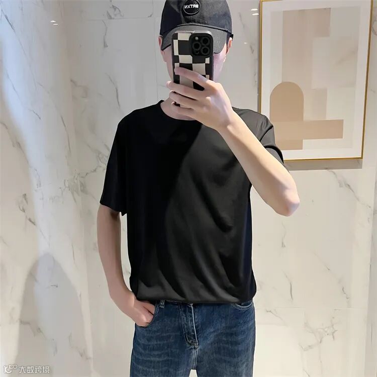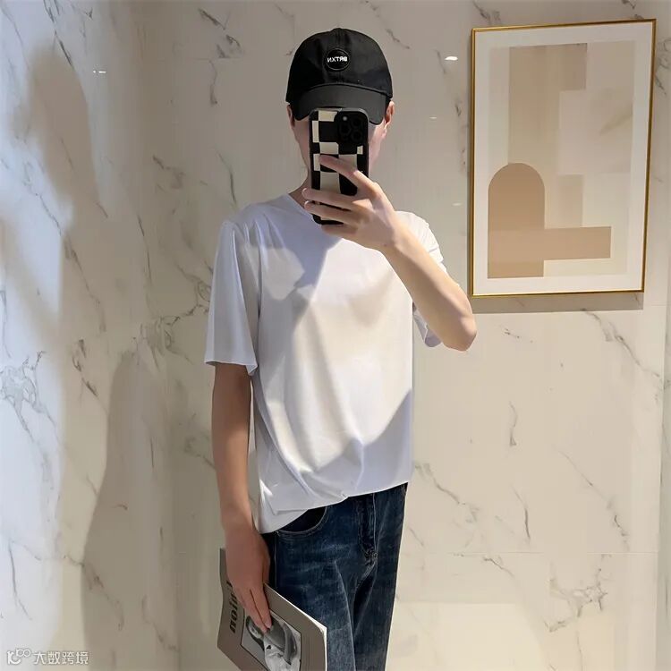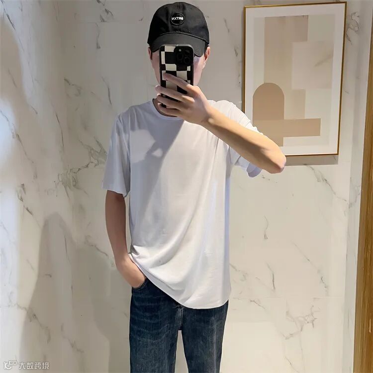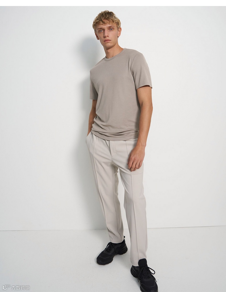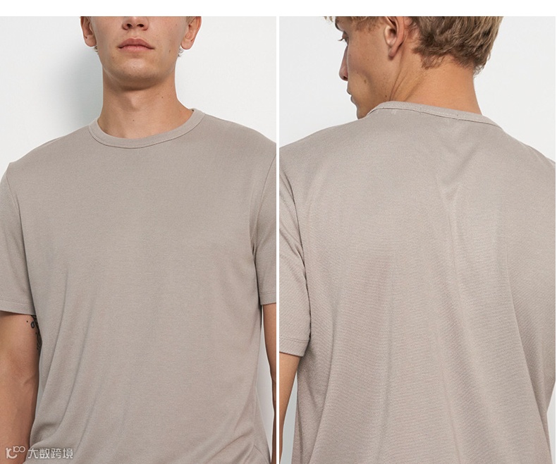 经典圆领时尚短袖T恤,合身版型,领口,