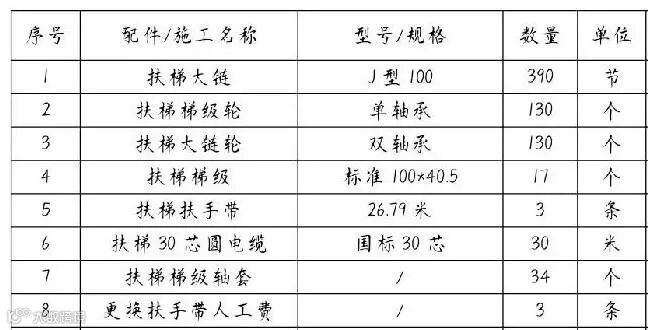 手扶电梯链、轮等配件 [390详见清单]