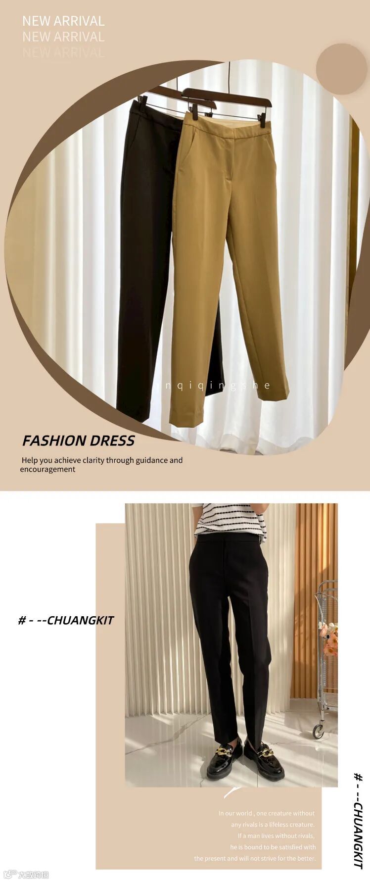 基础百搭 wan美剪裁~修身直筒高腰西裤女九分裤