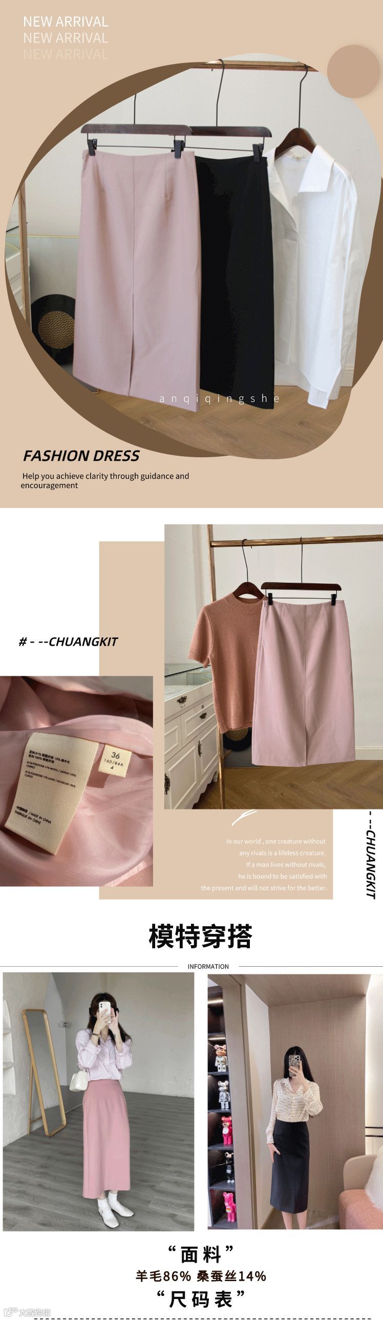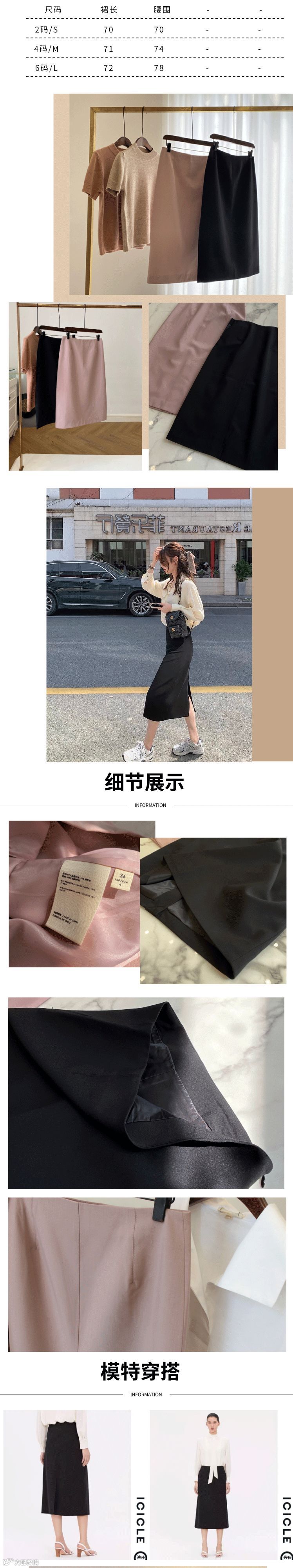 羊毛质感的铅笔裙,做工精致细腻,内里走线平整密实