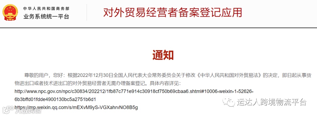 有重磅消息!商务部:取消对外贸易经营者备案登记,具体是什么事呢?跟着运达人小编一起来看看吧,改变还挺大的。