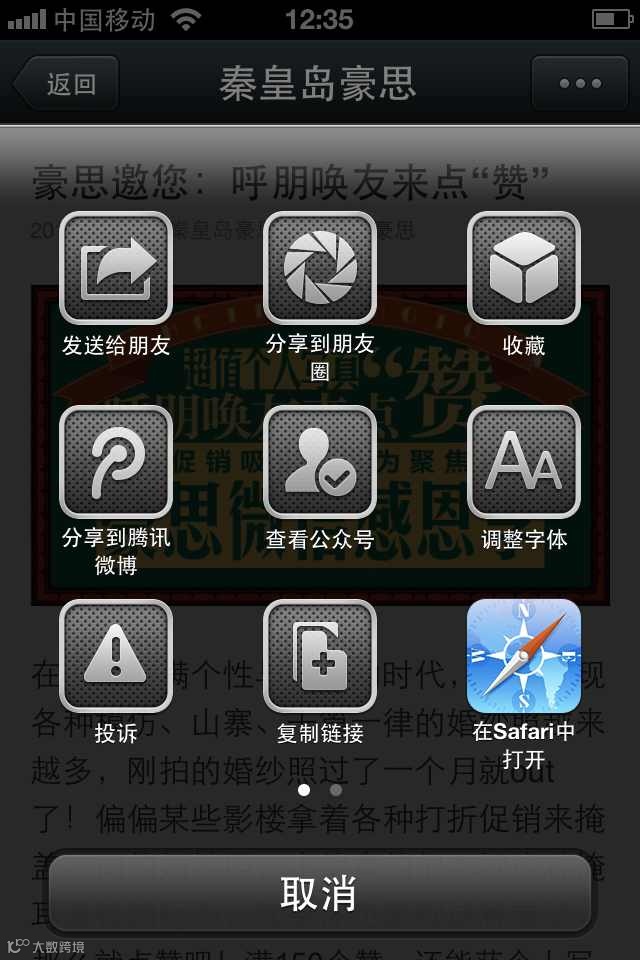 ①点击右上角•••>>分享到朋友圈