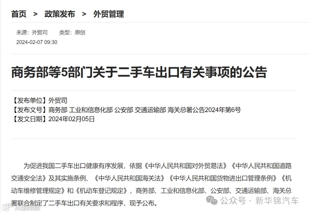 2 月,商务部、公安部、海关总署、国家税务总局、国家市场监督管理总局联合发布重要通知,二手车出口正式从试点阶段迈向备案制时代。这一转变意味着企业参与二手车出口业务的门槛大幅降低,只要符合相应的资质条件,即可向相关部门备案开展业务。此前试点时期,仅有少数企业能够获得资格参与,而备案制下,更多有实力、有意愿的企业得以投身其中。