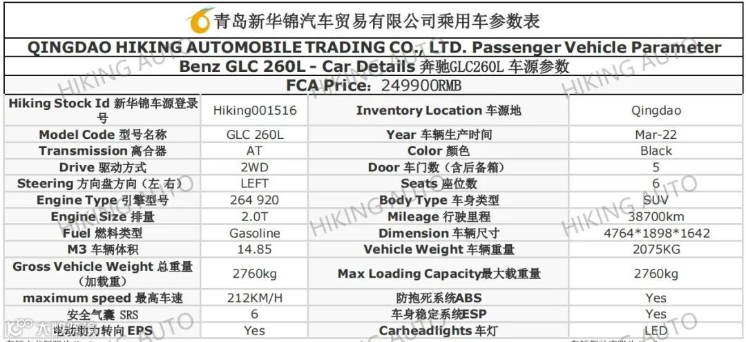 BENZ GLC 260L ( 2022, 38700km, RMB 249900 )