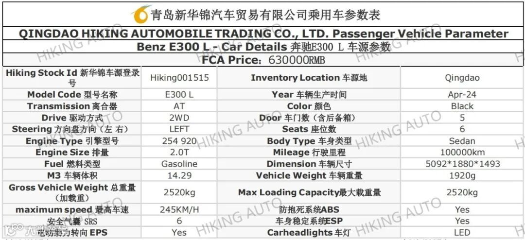 BENZ E300L ( 2024, 100000km, RMB 630000 )