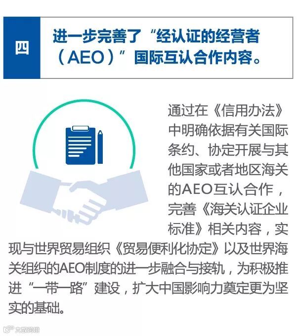 此次《信用办法》还在信用信息的采集与公示、建立信用信息异常企业名录、主动披露以及完善认证程序等多方面进行了修订。