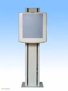 X射线胸片架是与医用X射线机相配套的、可上下移动的摄片辅助装置。诊视时,患者站立在胸片架与X射线发生装置之间并保持不动,X射线透过患者后,照射在摄片盒内的胶片(或X线探测器)上,使胶片曝光形成X光片(或X线探测器捕捉X射线并输出电信号,电信号经计算机处理后形成X射线的电子影像)。通过摄片盒的升降,可实现对患者、头部、腹部、骨盆等各部位的X射线检查。