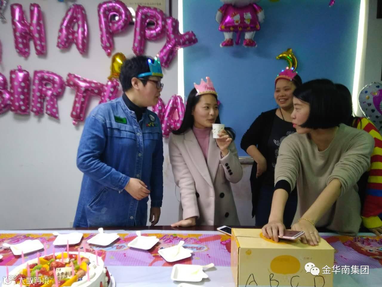 2017年3月27日下午五点整,厦门金华南进出口有限公司在办公楼会议室为本月生日员工举办生日会,分别为电商部陈丽丹,健身器材部黄丽清、郑素娥,工艺品部张丽娟、王瑛,家具部李巧婷、亢兵。