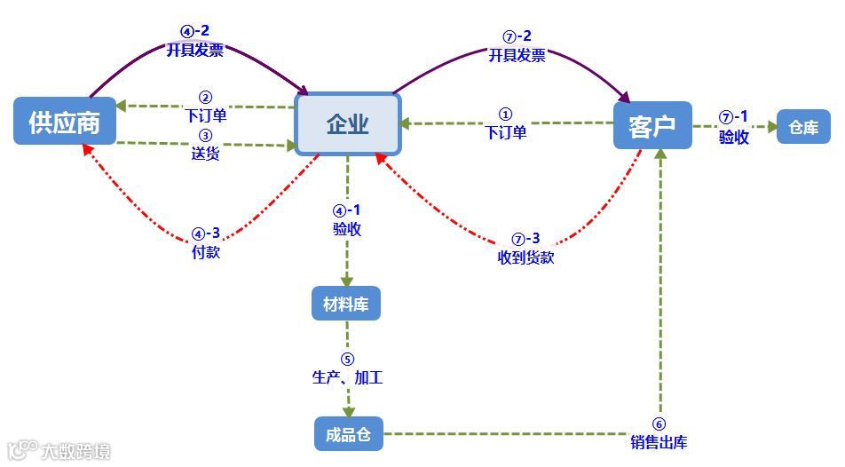 一般企业情况都是先开票后收款,企业管理者需要注意,其一,企业其实是在垫付税金;其二,如果供应商的款项先偿付,则企业也垫付了成本。如果没有理解这两句话的含义,大家可以看下图所示,简化版的发票流(票流)、资金流、物流,业务发生顺序就是序号1-7,现在就很直观的可以看出来,企业付款给供应商是发生在步骤4上,企业收到客户的钱是发生在步骤7上,所以一般情况来说,是企业会先支付给供应商的钱,而后才可以收到客户的钱(一定会存在例外企业,这里按照普遍情况解释)。现在大家可以理解,为什么说企业实际上垫付了税金和成本了。另外,企业也要保管好票流、资金流、物流等相关资料,这些是证明企业实际经营的重要资料,如果税务机关对企业某笔交易存在疑问,会要求企业提供票流、物流、资金流的相关资料。所以企业日常经营中也要注意保管相应的资料。