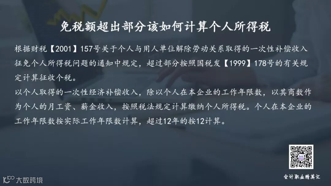 计算过程我已经跟你整理好了,以个人取得的一次性经济补偿收入,除以个人在本企业的工作年限数,以其商数作为个人的月工资、薪金收入,按照税法规定计算缴纳个人所得税。个人在本企业的工作年限数按实际工作年限数计算,超过12年的按12计算。
