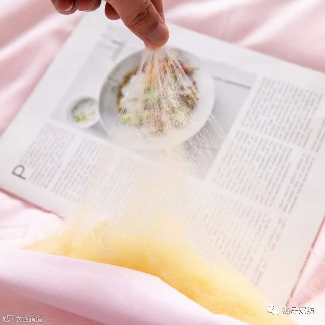 工艺:面料采用蚕蛹蛋白制作,填充黄金桑蚕丝